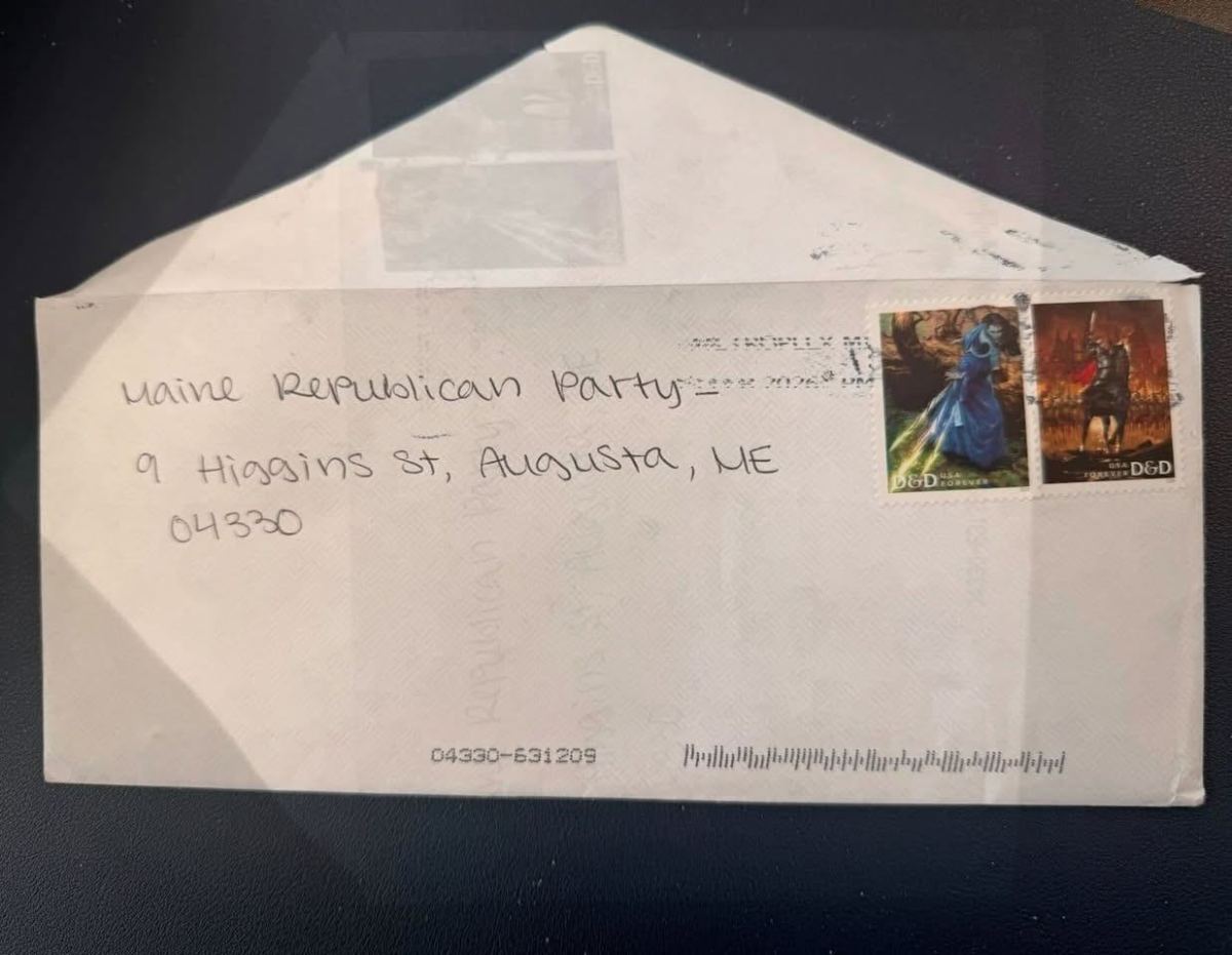Police are investigating an envelope containing a white powder that was delivered to Maine Republican Party headquarters in Augusta on Thursday.
