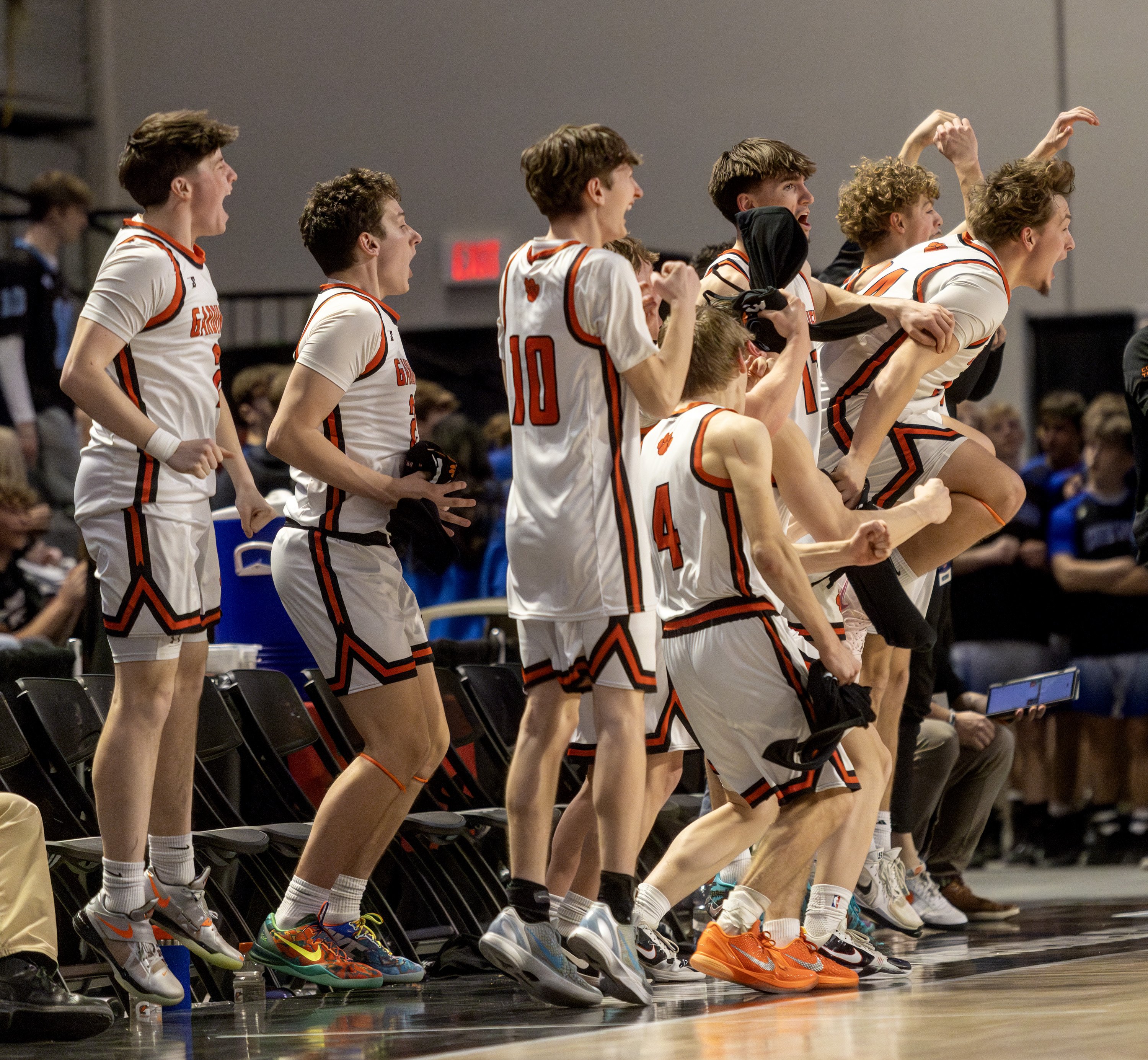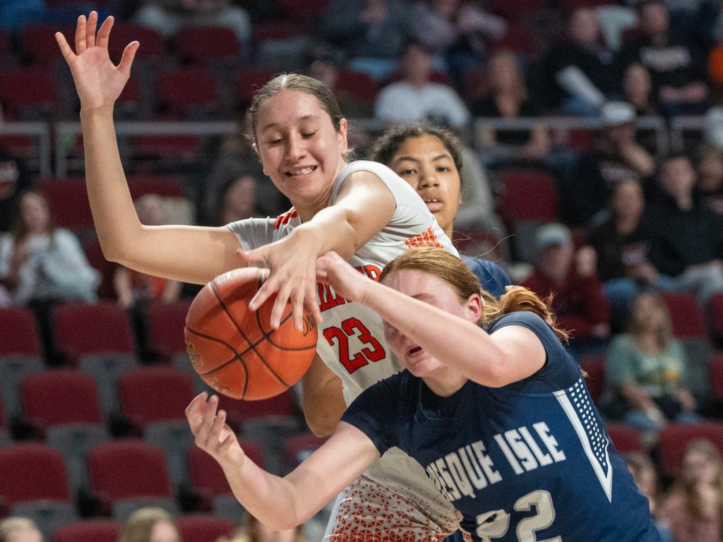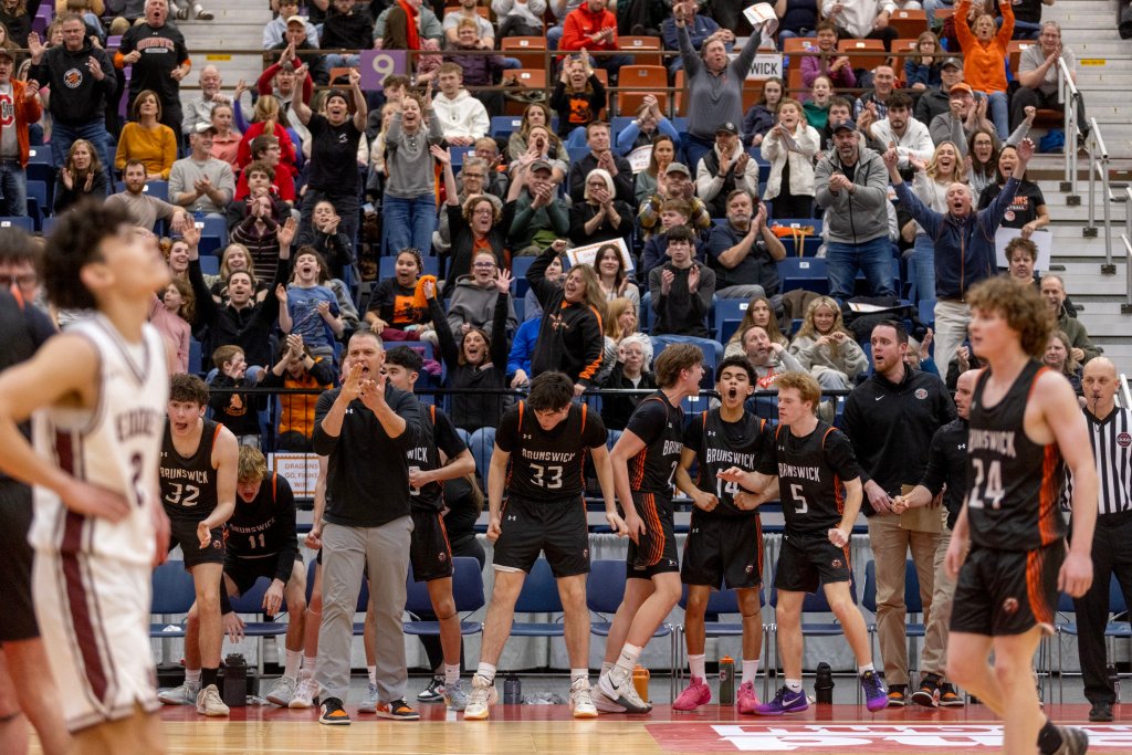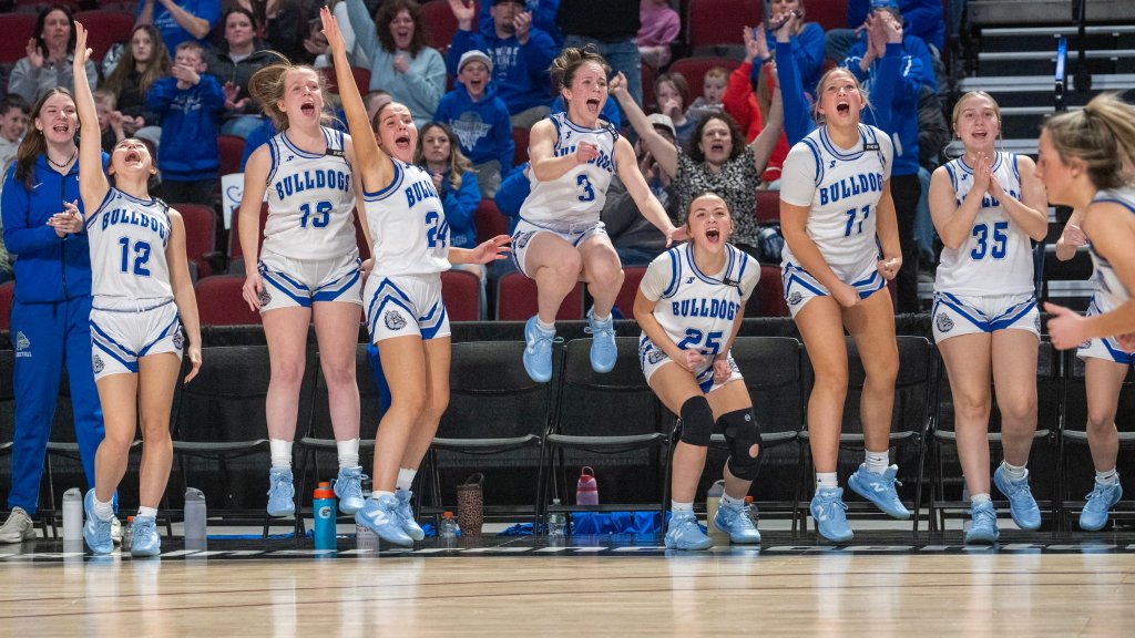Gardiner celebrates after a made basket Friday, Feb. 13, during its 62-29 win over Erskine in the Class B North quarterfinals in Bangor. (Anna Chadwick/Staff Photographer)Angus Ward of Camden Hills, back, and Massabesic’s Remington Grunhuvd compete in the 106-pound final Saturday, Feb. 14, at the Class A wrestling championship in Augusta. Grunhuvd won 9-0 to earn the 100th win of his career. (Anna Chadwick/Staff Photographer)Noble’s Hannah Perro, right, and Mt. Blue’s Abigail Garland battle in the 100-pound final Tuesday at the girls wrestling state championship in Belfast. (Anna Chadwick/Staff Photographer)Cony coach Isaiah Brathwaite and his team celebrate after taking the lead Wednesday during a Class B North semifinal against Ellsworth in Bangor. The Rams won, 66-64 and will face rival Gardiner in the regional final. (Rich Abrahamson/Staff Photographer)Lawrence players erupt from the bench after Maddy Provost scored a basket Wednesday during the Bulldogs’ 47-42 win over Ellsworth in a Class B North semifinal at Cross Insurance Center in Bangor. (Joe Phelan/Staff Photographer)Gardiner’s Alexa Quintana, top, and Presque Isle’s Marion Young battle for a rebound Wednesday during a Class B North semifinal basketball game in Bangor. (Joe Phelan/Staff Photographer)Brunswick players, coaches and fans celebrate after the Dragons scored a basket Wednesday during the Class A North semifinal against Edward Little at the Augusta Civic Center. Brunswick won, 52-44. (Anna Chadwick/Staff Photographer)Madison’s Brookelyn Rich, top, and Buckfield’s Haleigh Campbell, bottom, wrestle for the ball Thursday during a Class D South semifinal at the Augusta Civic Center. Buckfield won 41-23 to advance to the regional final. (Rich Abrahamson/Staff Photographer)
