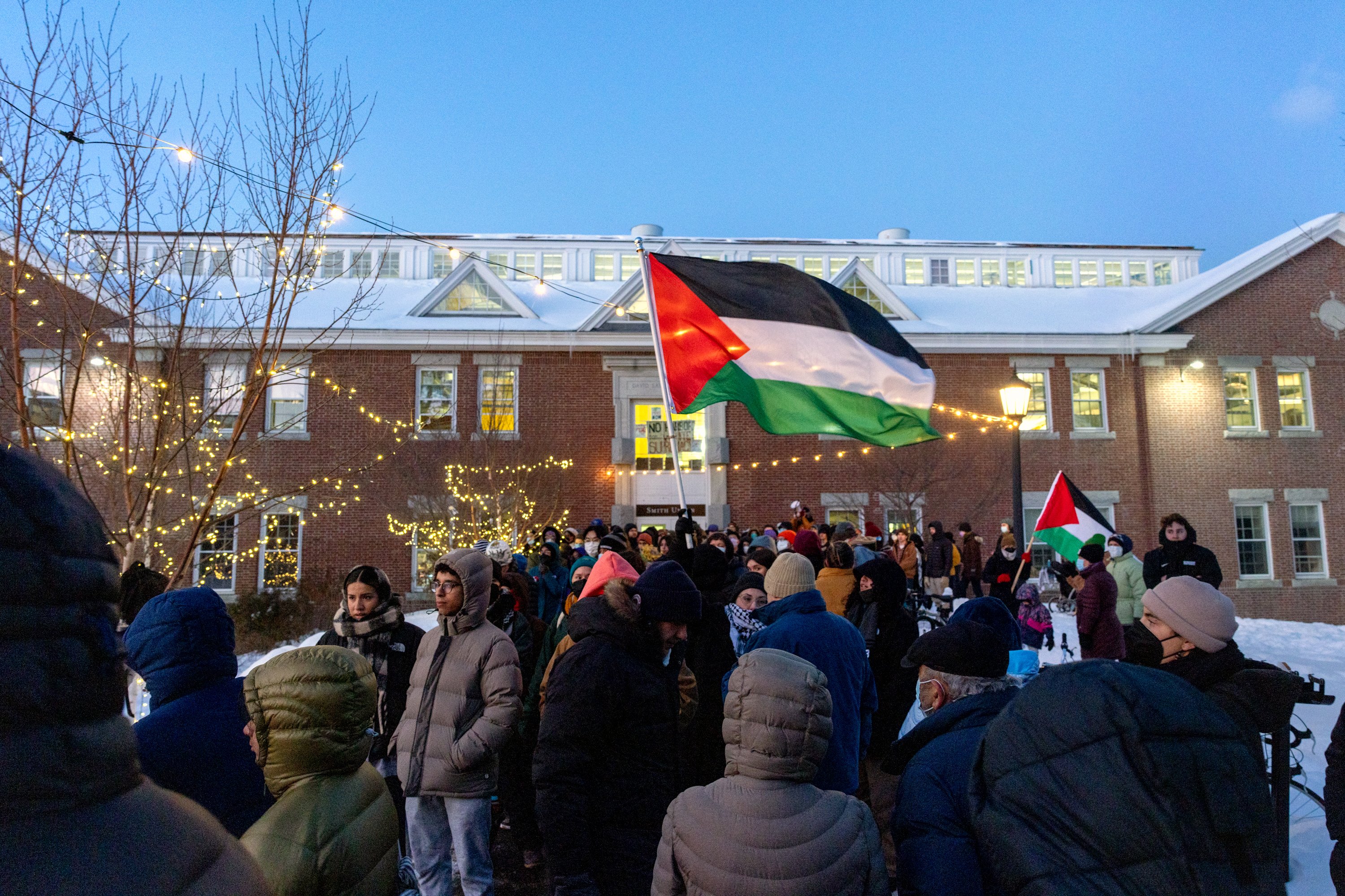 Following a multiday encampment inside Bowdoin’s Smith Union in February 2025, the college suspended eight students whom administrators said repeatedly violated policies within Bowdoin’s Code of Community Standards. Suspended students maintained that they did not break any rules with their initial action of setting up the encampment.