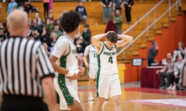 Maranacook scored the next five points, then Cai Dougher made a layup to put the Phoenix back on top. On Spruce Mountain’s next possession, Jack Fontaine made a steal and converted a breakaway layup to tie the game at 47.