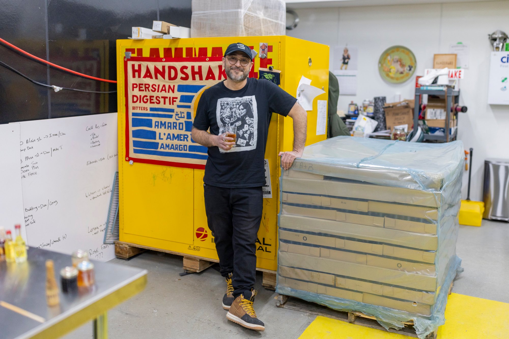 The Alder Street workspace of Handshake, Portland’s Persian digestif bitters, is replete with bottles of its namesake amaro, flags and samples of classic digestifs like Chicago’s beloved Swedish-style Jeppson’s Malört and German Underberg, and all manner of bitters accoutrements and memorabilia. Judging by his workshop, it’s hard to imagine Handshake founder Shahin Khojastehzad wasn’t always obsessed with bitters.