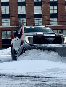That means more snow for Doherty to plow after the storm. On Wednesday morning, as the sun rose over Baxter Place on Commercial Street, he spread a thin layer of sand over the just-scraped parking lot. In a few hours, the sand and sun would melt the snow into slush.