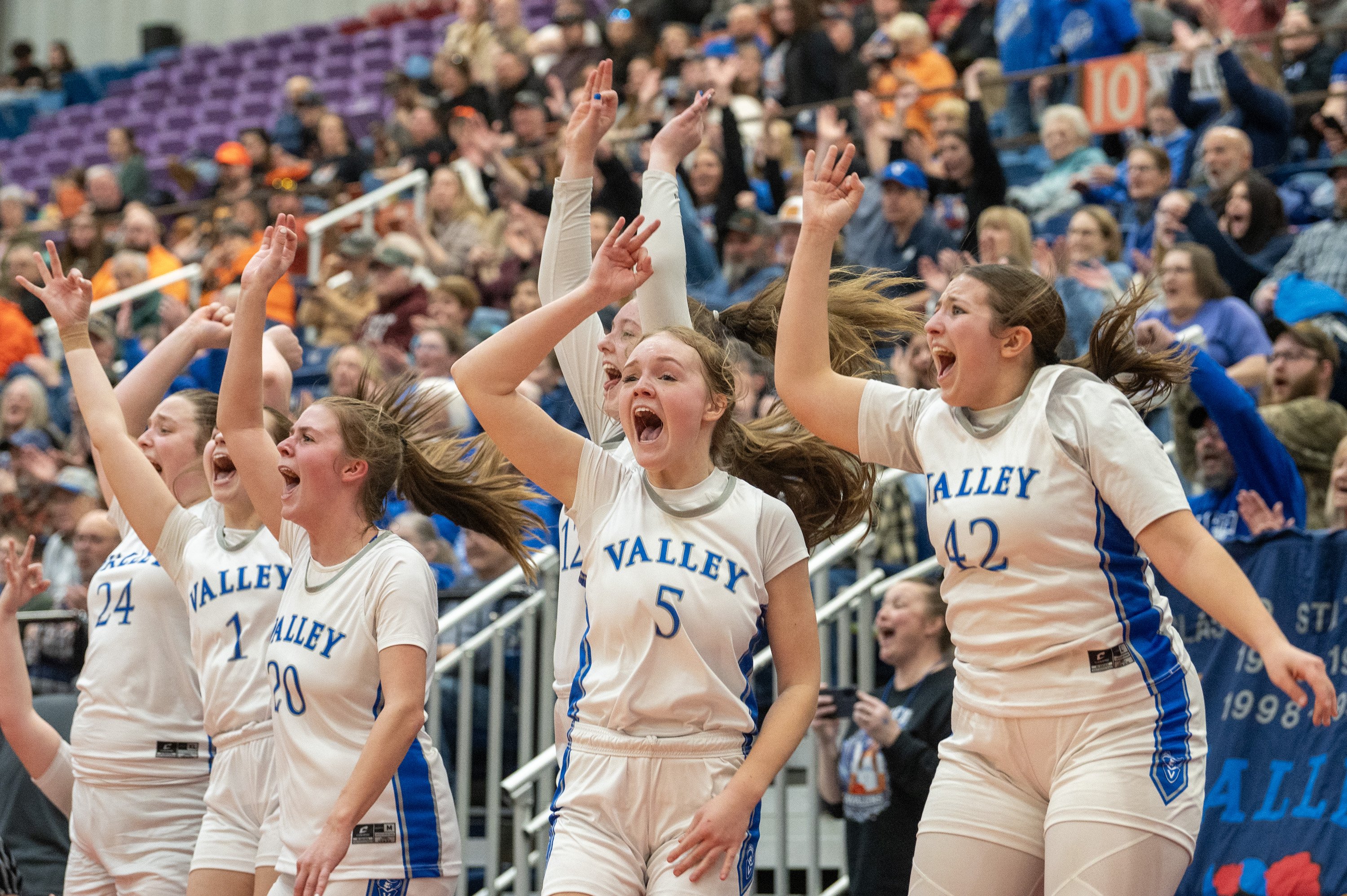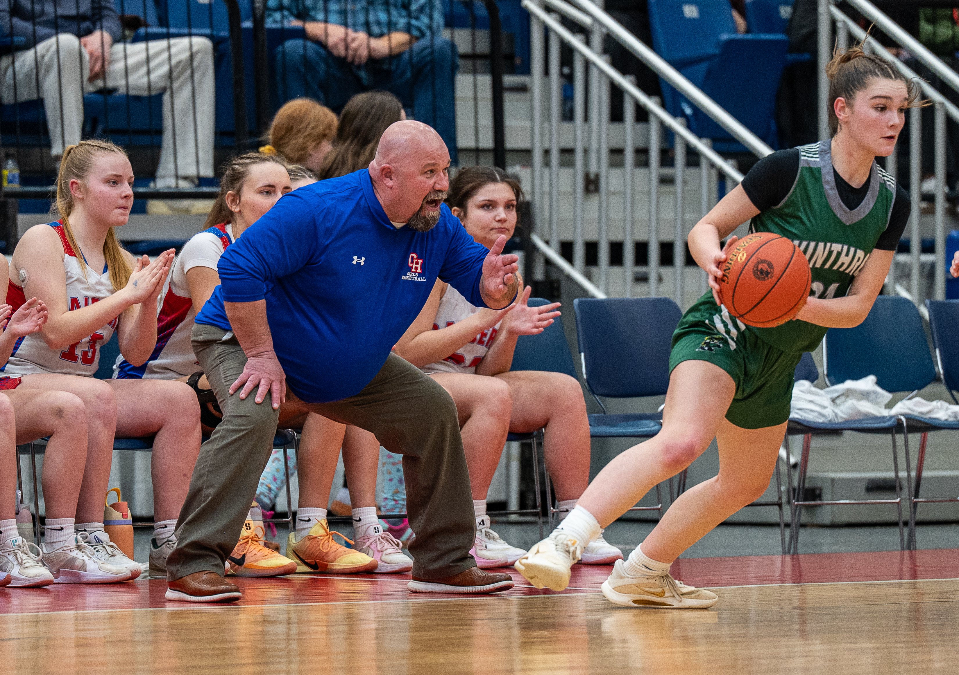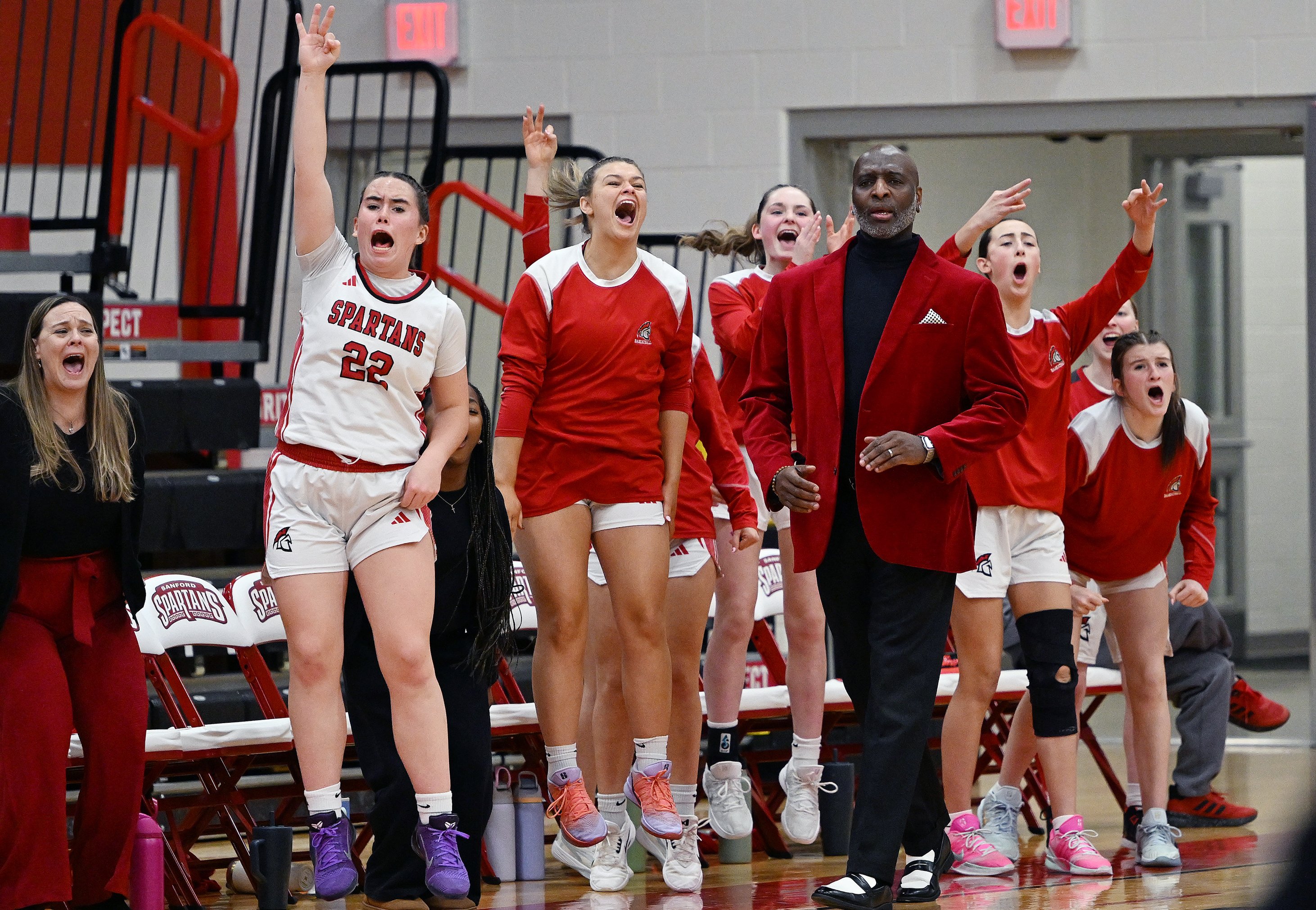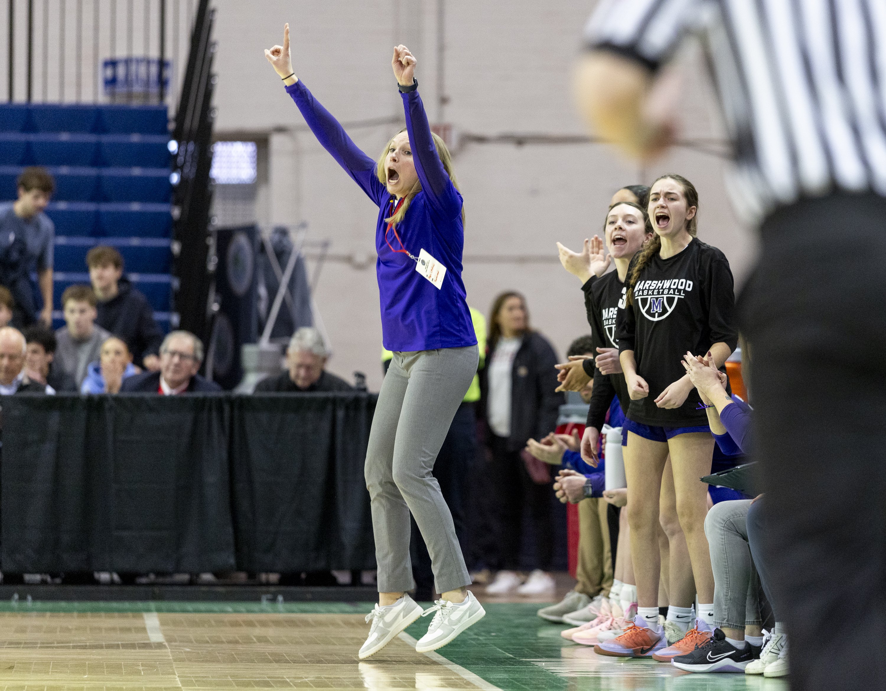 Oak Hill coach Chuck Cullins instructs his team during its Class C South quarterfinal against Winthrop on Tuesday at the Augusta Civic Center. Winthrop won, 41-39. (Russ Dillingham/Staff Photographer)Brunswick coach Ben Clark, right, and players react after a basket put the game out of reach for Edward Little during a Class A North semifinal game Wednesday at the Augusta Civic Center. (Russ Dillingham/Staff Photographer)Oceanside players do a dance on the bench after a teammate sank a 3-point basket against during their 52-37 win over York in a Class B South semifinal on Wednesday at the Portland Expo. (Derek Davis/Staff Photographer)Cheverus coach Richie Ashley coaches on the sideline during his team’s 61-60 win over Thornton Academy during a Class A South quarterfinal on Saturday at the Portland Expo. (Brianna Soukup/Staff Photographer)Hampden Academy’s bench celebrates after a made 3-pointer during a Class A North semifinal on Wednesday at the Augusta Civic Center. The Broncos won, 41-39, to advance to the regional final. Libby Kamrowski Kenny/Staff Photographer)Valley girls basketball players celebrate a basket late in fourth quarter of the Class S South final Saturday at the Augusta Civc Center. (Joe Phelan/Staff Photographer)Players on the Lawrence bench erupt after Maddy Provost scored a basket during the Bulldogs’ 47-42 win over Ellsworth in a Class B North semifinal on Wednesday at Cross Insurance Center in Bangor. (Joe Phelan/Staff Photographer)Brunswick teammates celebrate after Bryce Gerrish hit a 3-pointer during the Dragons’ 66-37 win over Mt. Blue in a Class A North quarterfinal on Saturday in Augusta. (Derek Davis/Staff Photographer)The Winthrop bench erupts as referee Rob Lemar, right, signals a 3-pointer on a shot by Cyara Harriman, foreground, during the Ramblers’ come-from-behind 41-39 win over Oak Hill in a Class C South quarterfinal on Tuesday in Augusta. (Russ Dillingham/Staff Photographer)South Portland players watch from the bench in the final minutes of the Red Riots’ 34-33 loss to Portland in Class A South quarterfinal on Saturday at the Portland Expo. (Brianna Soukup/Staff Photographer)South Portland players celebrate a basket during their Class A South semifinal against Sanford Thursday at the Portland Expo. (Brianna Soukup/Staff Photographer)The Scarborough bench reacts to a 3-pointer during their prelim game against Kennebunk. Scarborough won, 50-44. (Shawn Patrick Ouellette/Staff Photographer)Gardiner coach Britney Gero instructs her players during the Tigers’ 46-29 win over Presque Isle in a Class B North semifinal Wednesday at Cross Insurance Arena in Bangor. (Joe Phelan/Staff Photographer)Edward Little’s bench erupts after a 3-pointer by Akol Maiwen, while Ben Augustino smiles during a game against Lewiston on Thursday in Auburn. (Libby Kamrowski Kenny/Staff Photographer)Sanford players celebrate a 3-pointer as coach Rossie Kearson looks on Thursday against visiting Biddeford. (Shawn Patrick Ouellette/Staff Photographer)Gardiner players celebrate after a basket in the first of of the Tigers’ 46-29 win over Presque Isle in a Class B North semifinal on Wednesday at Cross Insurance Arena in Bangor. (Joe Phelan/Staff Photographer)The York bench reacts after Ronin Avery sank a 3-point basket as time expired in regulation to force overtime against Yarmouth on Wednesday in a Class B South semifinal. (Derek Davis/Staff Photographer)Westbrook players celebrate a 3-point shot in the first of a Class A South quarterfinal on Tuesday at the Portland Expo. The Blue Blazes lost to South Portland 43-31. (Brianna Soukup/Staff Photographer)Lawrence coach Greg Chesley gives instructions to his team during its 47-42 win over Ellsworth in a Class B North semifinal on Wednesday at Cross Insurance Center in Bangor. (Joe Phelan/Staff Photographer)Marshwood players and coach Angie Littlefield react to a steal during their Class B South semifinal against Gray-New Gloucester. (Brianna Soukup/Staff Photographer)Biddeford players celebrate after a 3-pointer during their 45-42 win over Windham in a Class A South quarterfinal on Tuesday at the Portland Expo. (Derek Davis/Staff Photographer)