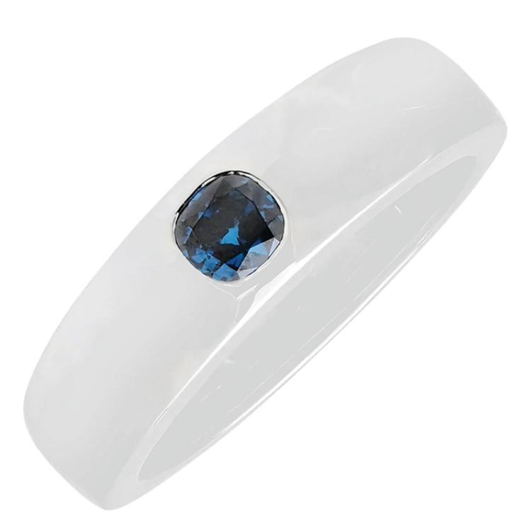 Founded in 1914 and headquartered in Waterville, Day’s offers this 14K men’s band with a one-third-carat blue diamond, durably channel set in the center. Custom made to size, it keeps his love comfortable and classy.