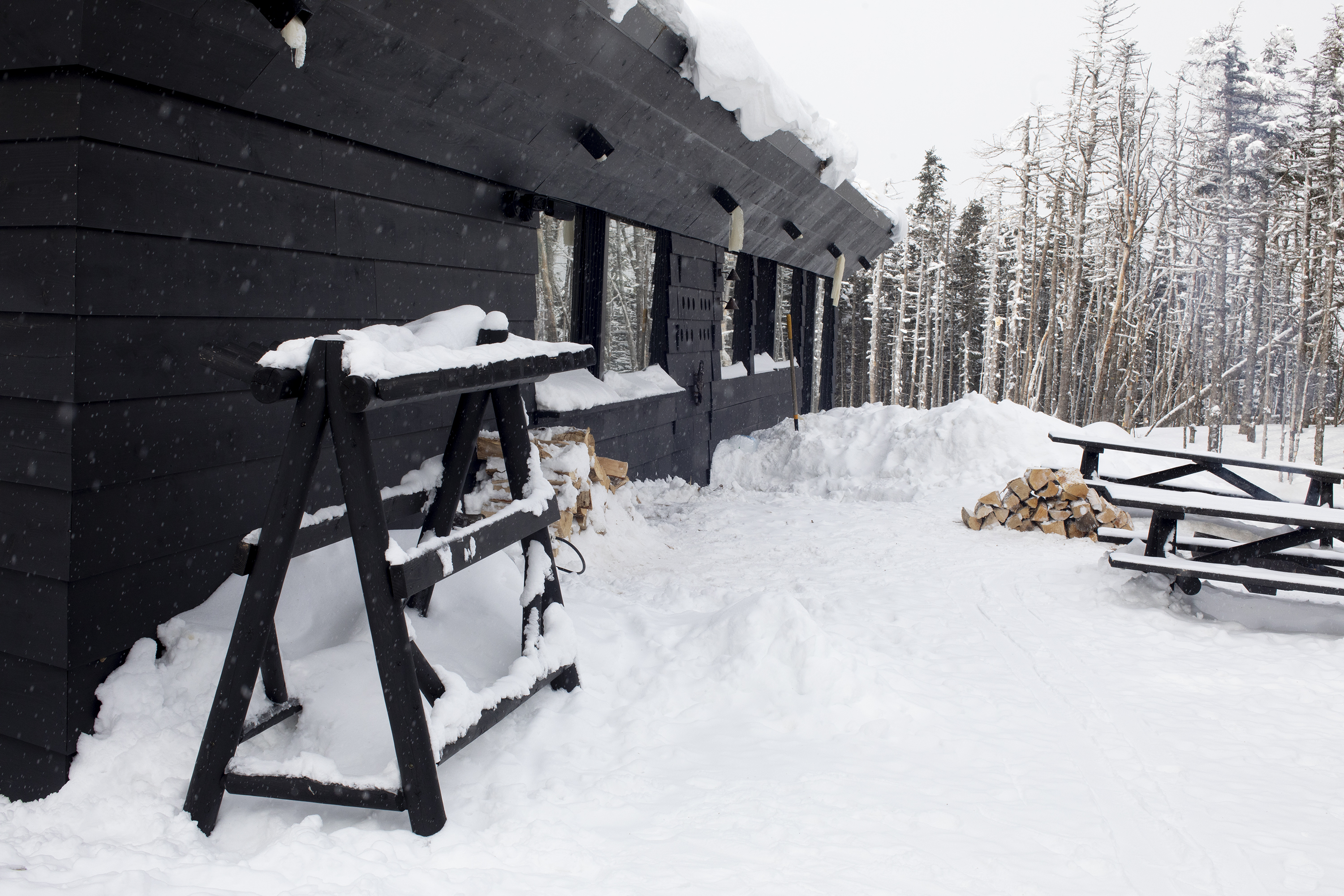 Turn the corner when exiting the Rangeley Quad chairlift and there it is — a dark, pine-tar-covered clapboard building standing in stark contrast to its snowy white surroundings.