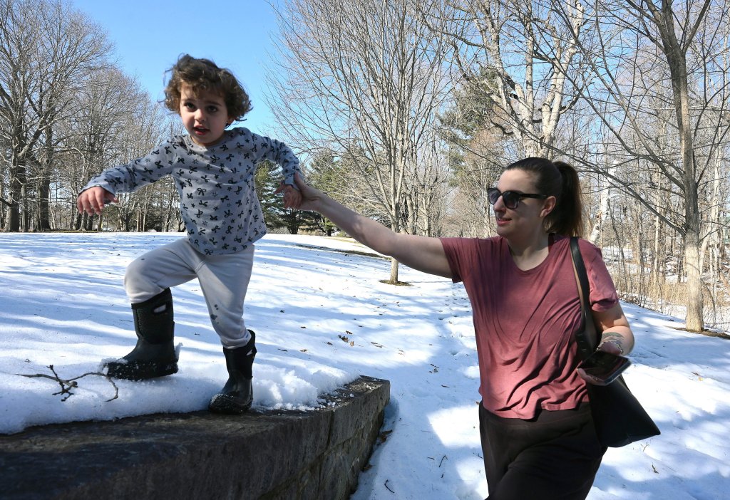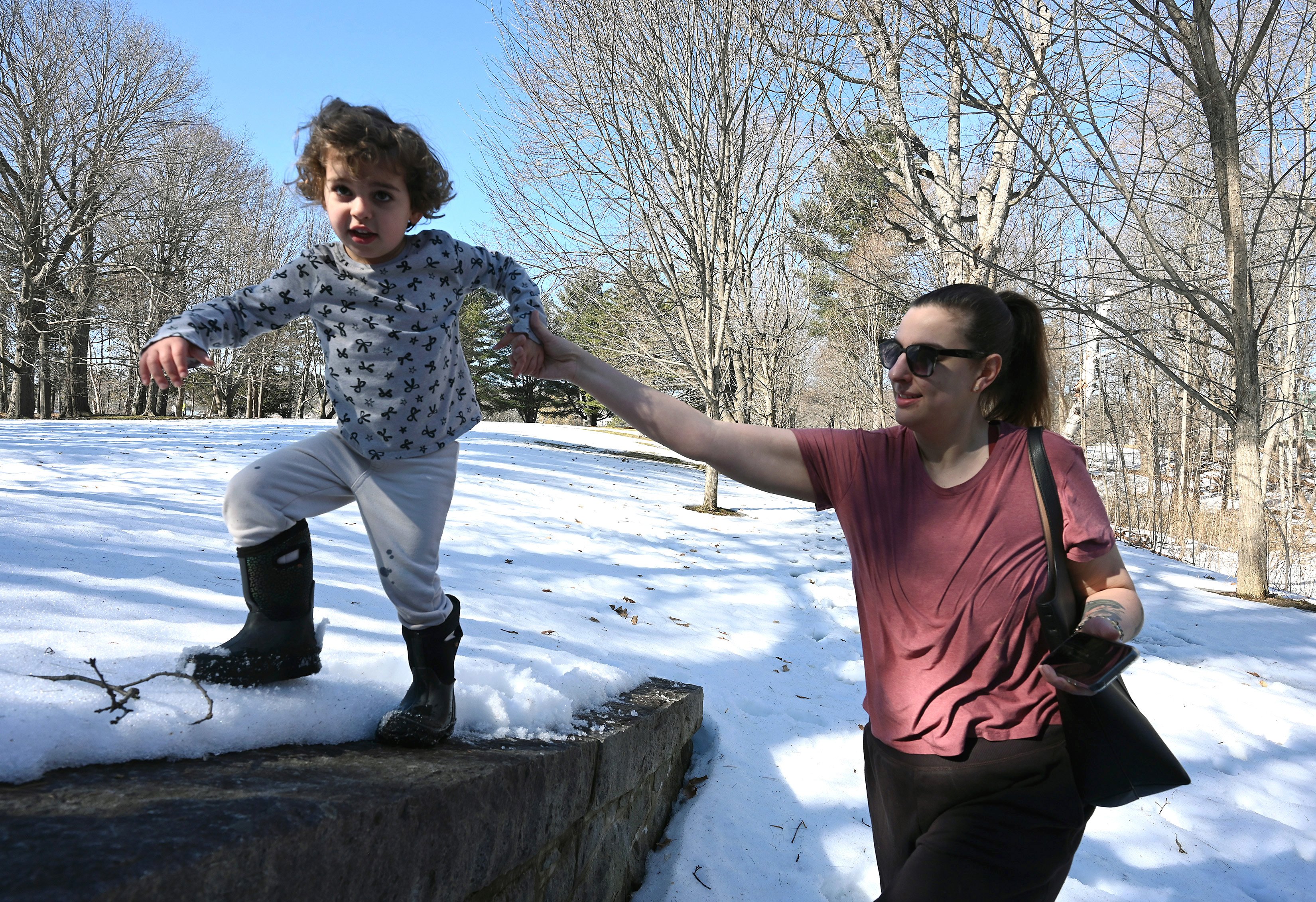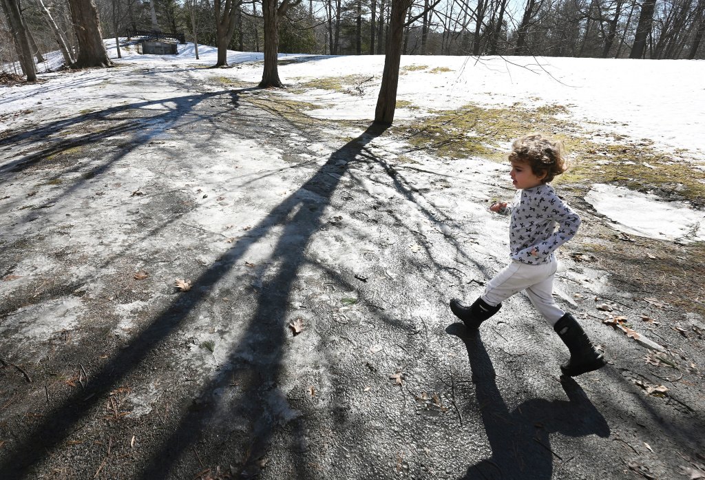 Raegan White, 4, runs ahead while exploring Capitol Park on Tuesday with her mother, Taylor West, and brother Reid White, 2, of Winslow. (Rich Abrahamson/Staff Photographer)Raegan White, 4, and mother Taylor West of Winslow explore Capitol Park on Tuesday in Augusta. The girl’s brother, Reid White, 2, was also along for the adventure. (Rich Abrahamson/Staff Photographer)