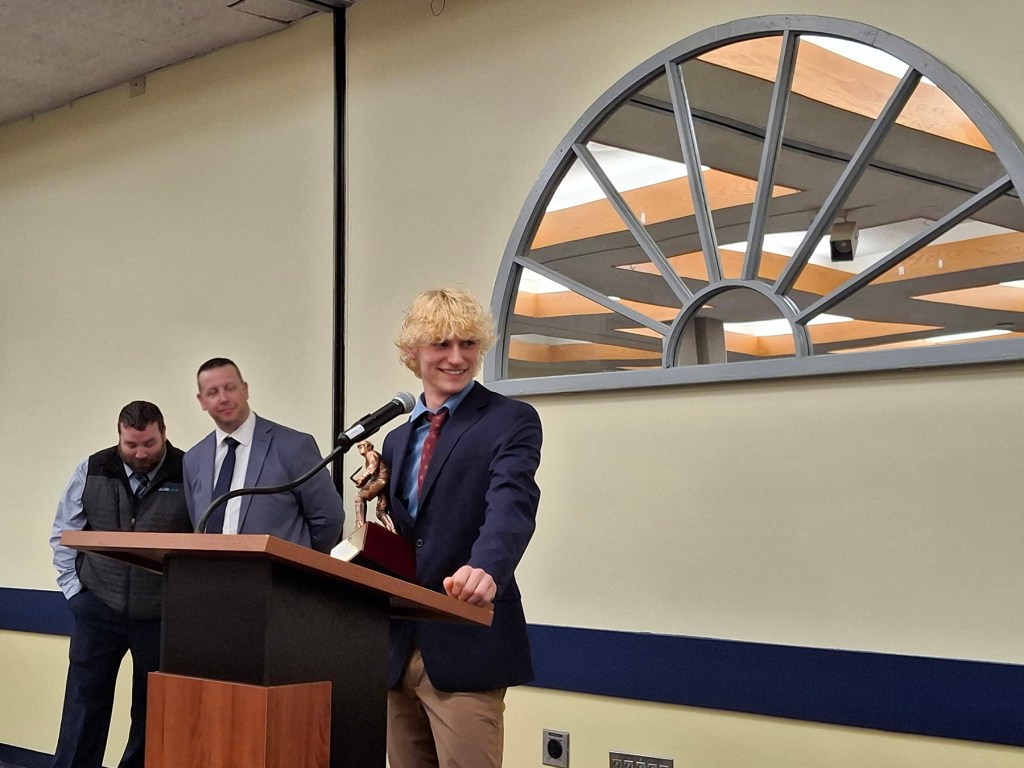 “It means a lot to me,” Skillings said after the ceremony. “I read (Travis Roy’s) book, too, and just learning and how he dealt with stuff just really pushed me to be the best person and player I am today.”