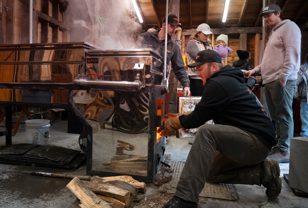 Maine Trust for Local News photographers capture people of all ages checking out their local maple syrup producers.