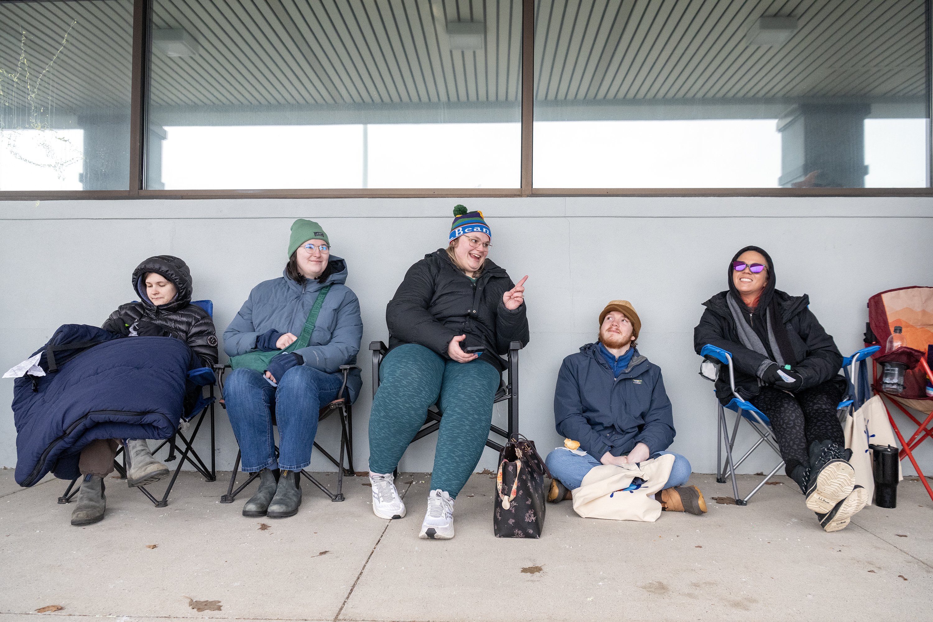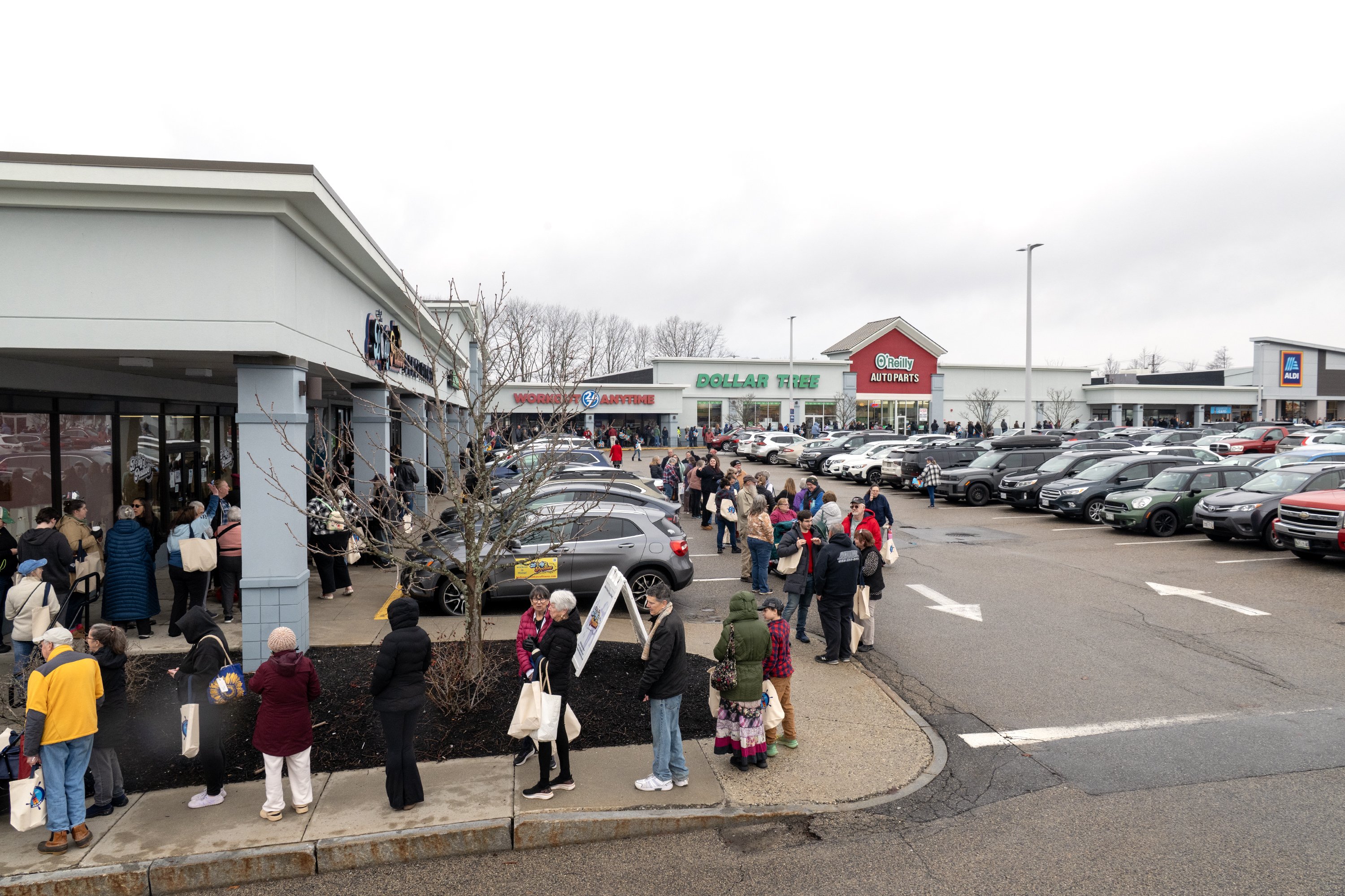 Staff handed out numbered tickets to the first 200 customers, running out by 8:05 a.m. By the time the doors opened, the line snaked the length of the shopping plaza’s covered sidewalk and into the parking lot. It was cool and cloudy, but the rain held off.