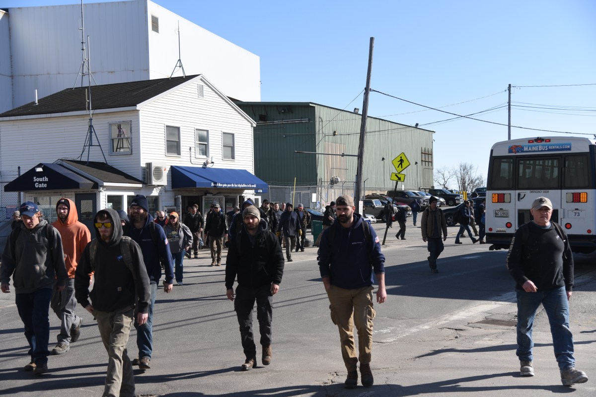 After rejecting the initial contract proposal last weekend, hundreds of workers began picketing outside the shipyard on Monday.