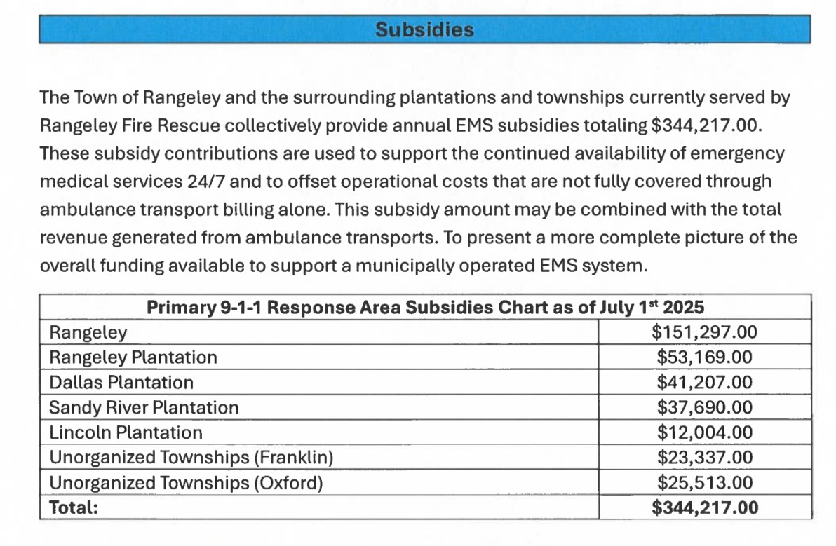 MaineHealth has been contracted for the service by Rangeley and the surrounding plantations since 2005.