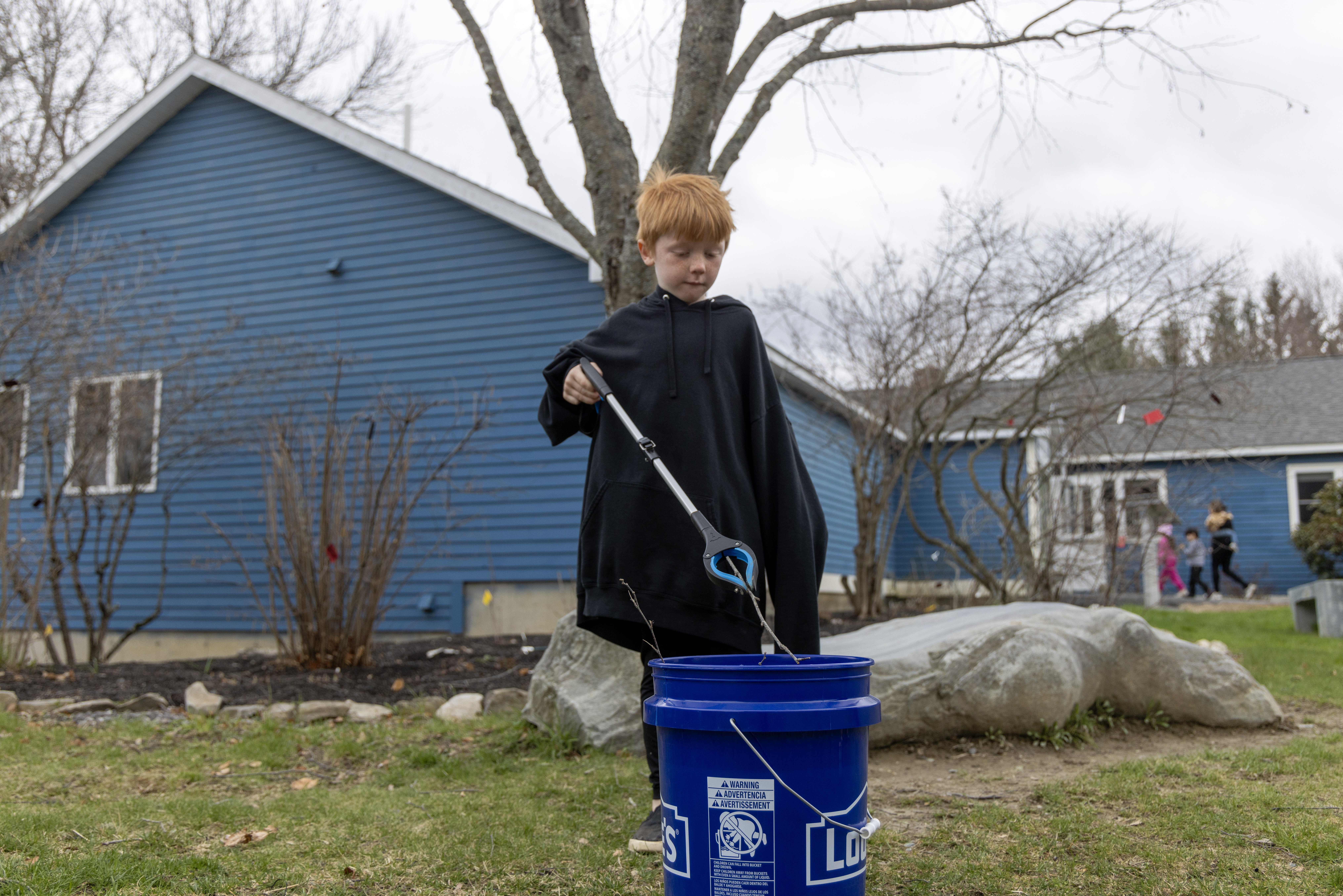 Purchase this imageLeo Rideout, 4, helps pick up Viles Arboretum trails during their Earth Day event. The event had nature crafts, garden landscaping, and clean up activities Wednesday April 22, 2026 in Augusta. (Anna Chadwick/Staff Photographer)