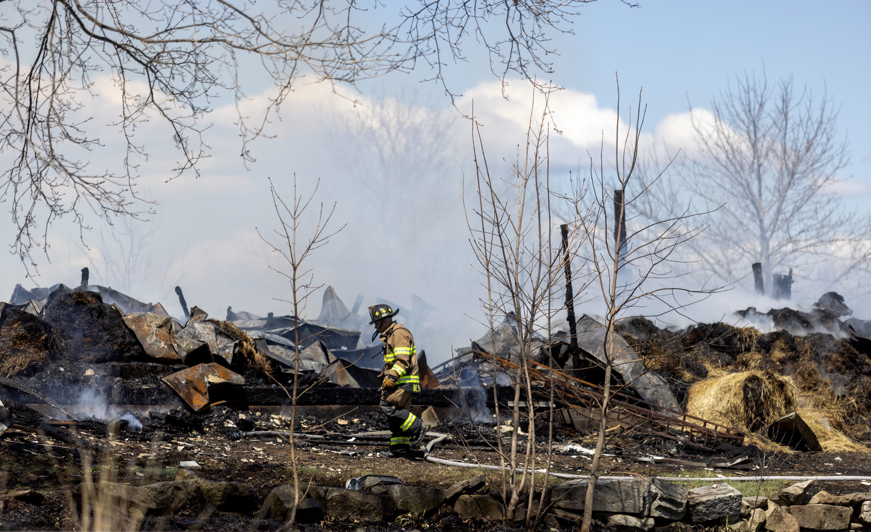 Firefighters struggled to contain the blaze due to limited water access at the rural site and the presence of old hay, which caused the fire to spread rapidly. The barn was nearly leveled, leaving only a blackened, water-soaked mass of debris.