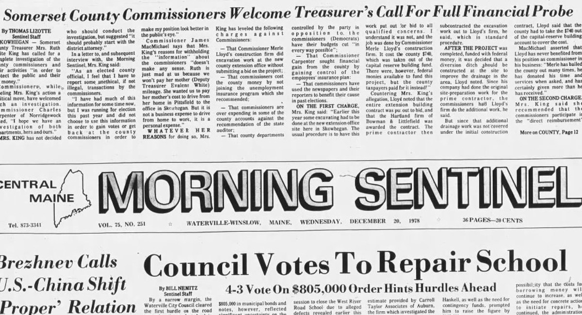 Dec. 19, 1980: Fire damages Holiday Inn restaurant & lounge complex in Augusta, 2 Maine men get life sentences, and Chrysler Corp. trying to stay afloat after $1.7 billion loss in 1980