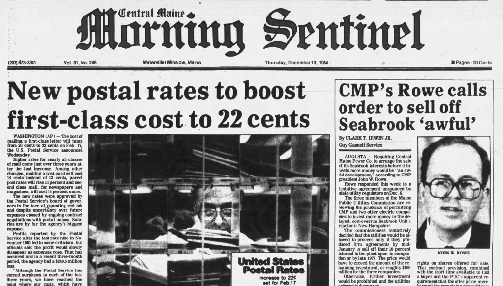 Dec. 13, 1984: Central Maine Power president calls sell off of Seabrook interests ‘awful’, Maine bans sale of counterfeit Cabbage Patch dolls, and stamp price to jump 2 cents to 22 cents