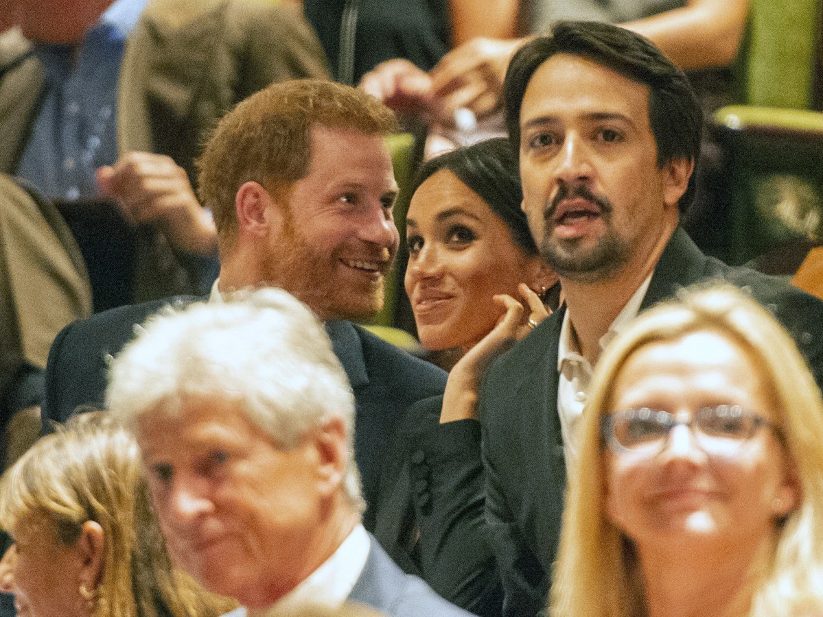He sings the opening words to a ballad, performed in the musical by an actor playing his sixth great-grandfather King George III.