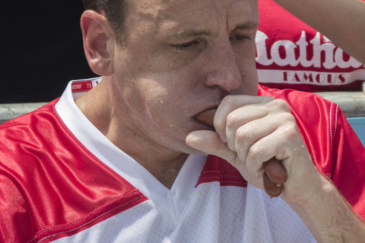 Defending champ Chestnut sets record with 74 hot dogs