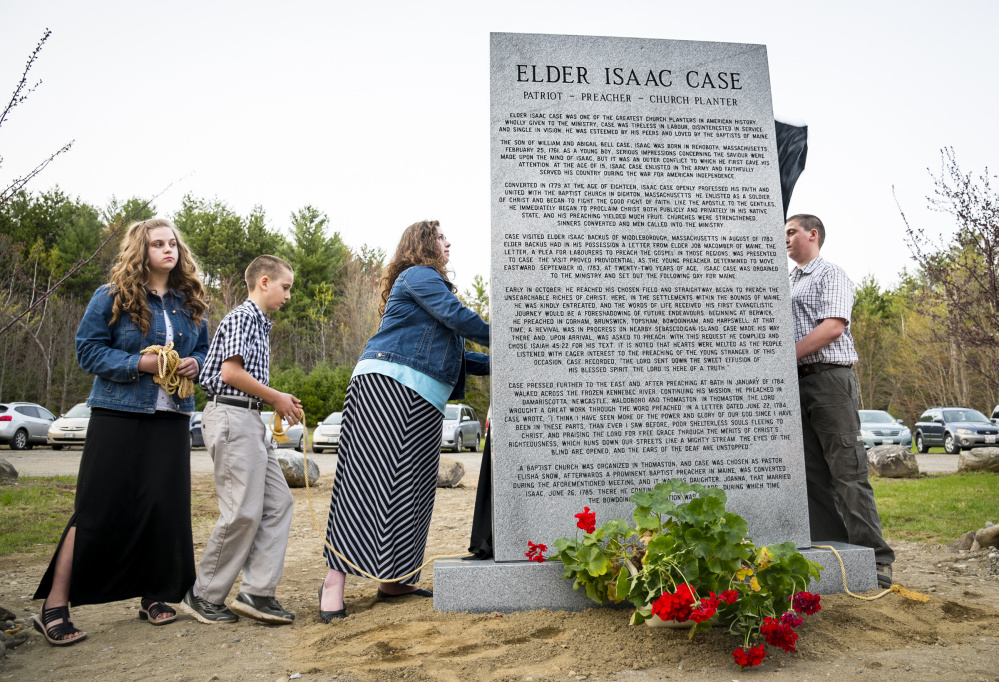 A monument to the Baptist minister and missionary in early Maine was dedicated Thursday, donated in memory of the late Rev. Craig Lathrop, who died a year ago.