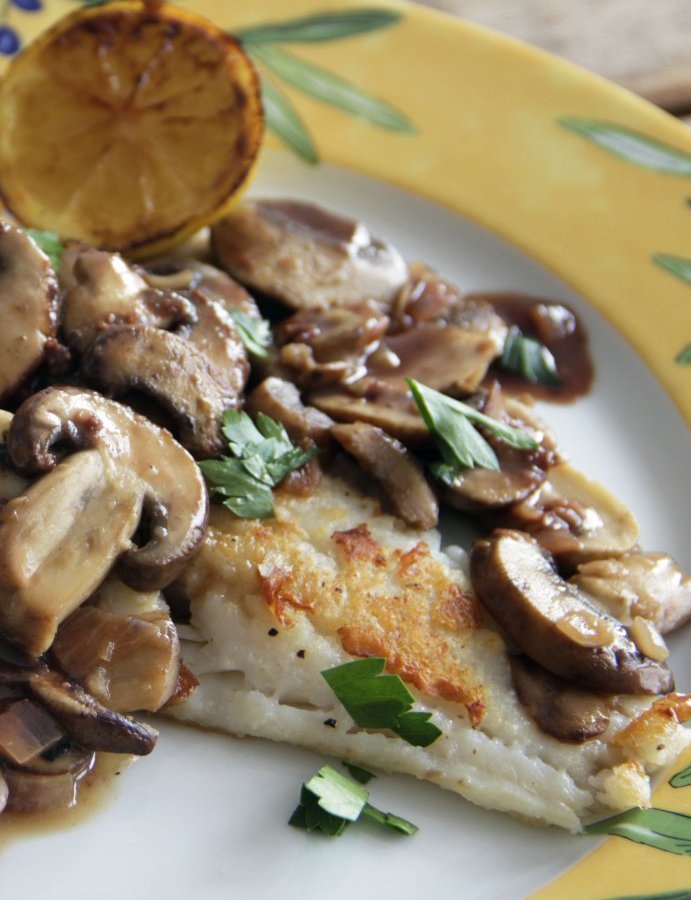 With mushrooms in a pan sauce, fish becomes a more filling winter dish.