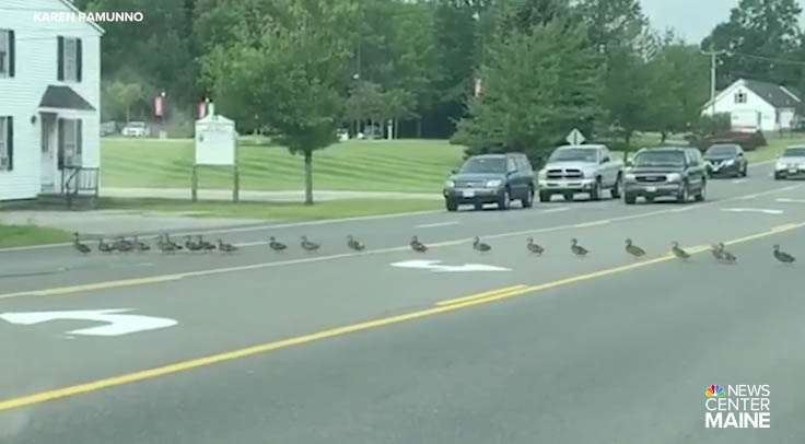 Video: Motorists make way for 45 ducklings to cross 5-lane Maine road