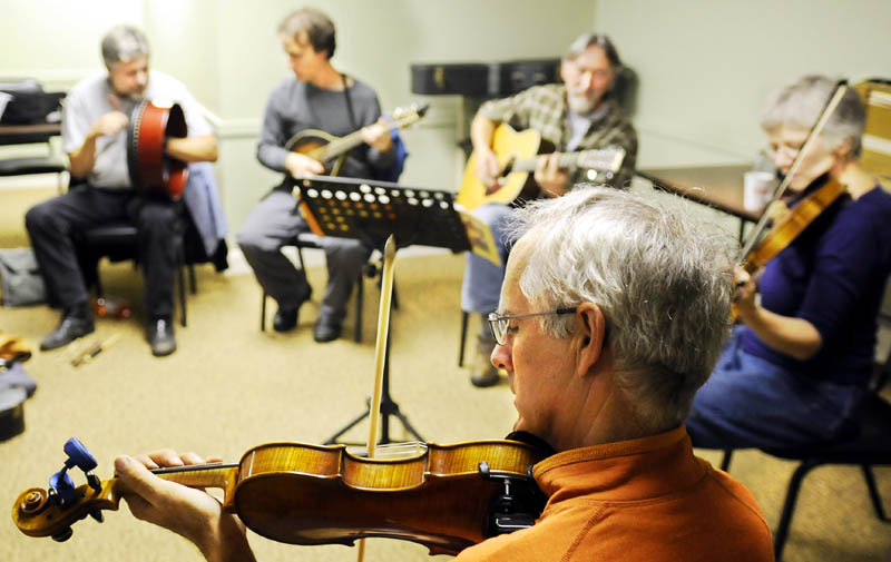 Acoustic musicians jam Sunday at the Viles Arboretum in Augusta during the inaugural get-together for either aspiring or experienced musicians. The group plans to meet monthly at the arboretum with an hour of slow jam for novice players, and a couple hours to follow of bluegrass and contra tunes.