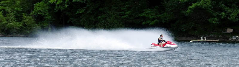 A personal water craft zooms across Maranacook Lake on Thursday afternoon in Winthrop. Today should be another good day to be out on the water as the weather forecast is for mostly sunny skies with high temperatures in the low 80s.