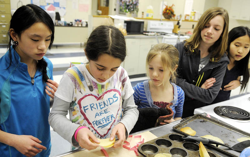 Anna Schaab, second from left, shows Rose Warren, left, Ella Schaab, third from left, Isabel Charland and Georgia Warren how to roll fortune cookies Thursday at Hall-Dale High School kitchen in Farmingdale. The Hall-Dale Middle School civil rights team members were baking up batches of the cookies before hosting several days of seminars about how […]