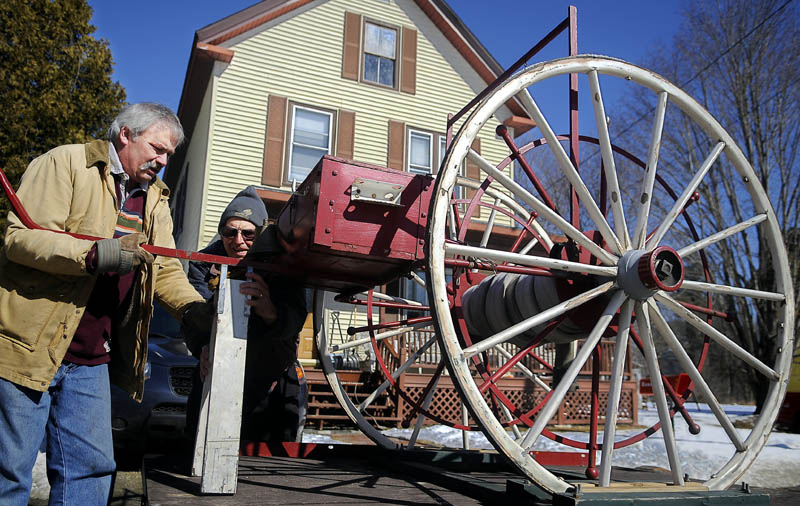 Rob Saucier, left, and Rick Tracy, of Groveland, Mass., balance an 1852 hose carriage on a trailer Sunday outside of Saucier’s South Gardiner shop. Saucier, the proprietor of Custom Carriages, repaired the wooden wheels on Tracy’s fire wagon that first fought blazes in Concord, N.H. Tracy plans to display the carriage in fire department musters […]