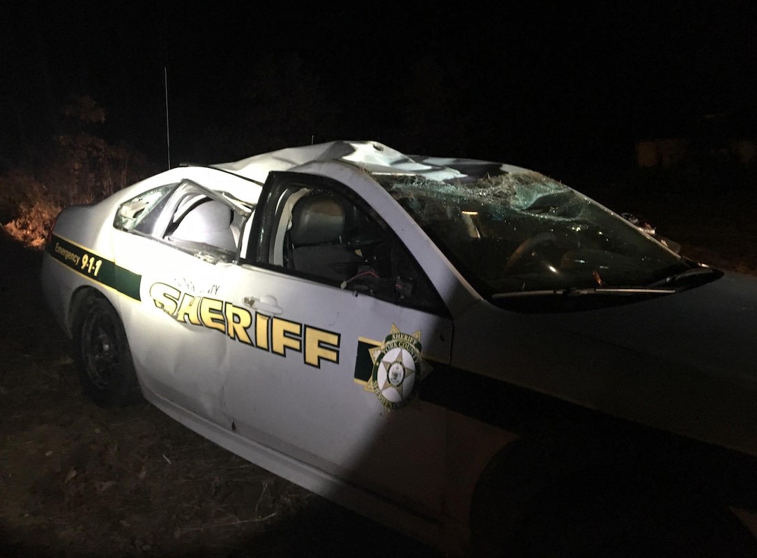 No one is hurt when the deputy’s patrol car rolled over Saturday.