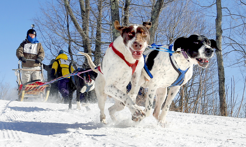 The Down East Mushers Bowl Races were called off, but participants traversed the course at Five Fields Farm anyway.