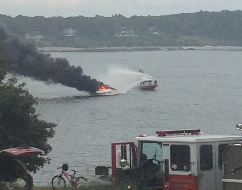 The fire broke out on a 39-foot cabin cruiser off Portland Head Light.