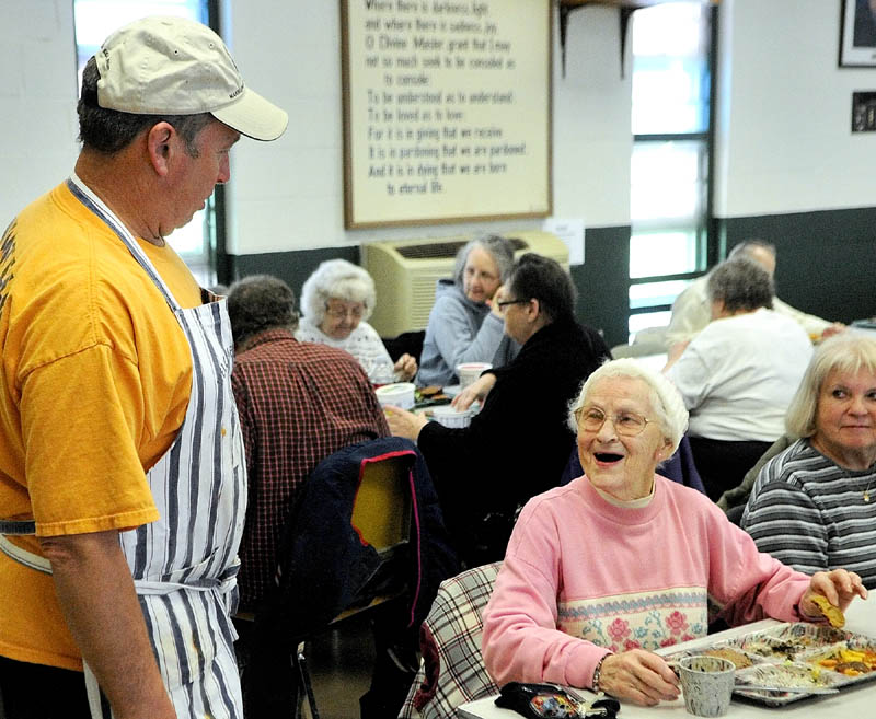 WINTHROP — Free lunch was served to about three dozen diners Wednesday as the Winthrop Hot Meal Kitchen ended a seven-month hiatus and resumed serving daily mid-day meals at St. Francis Xavier Church Hall.