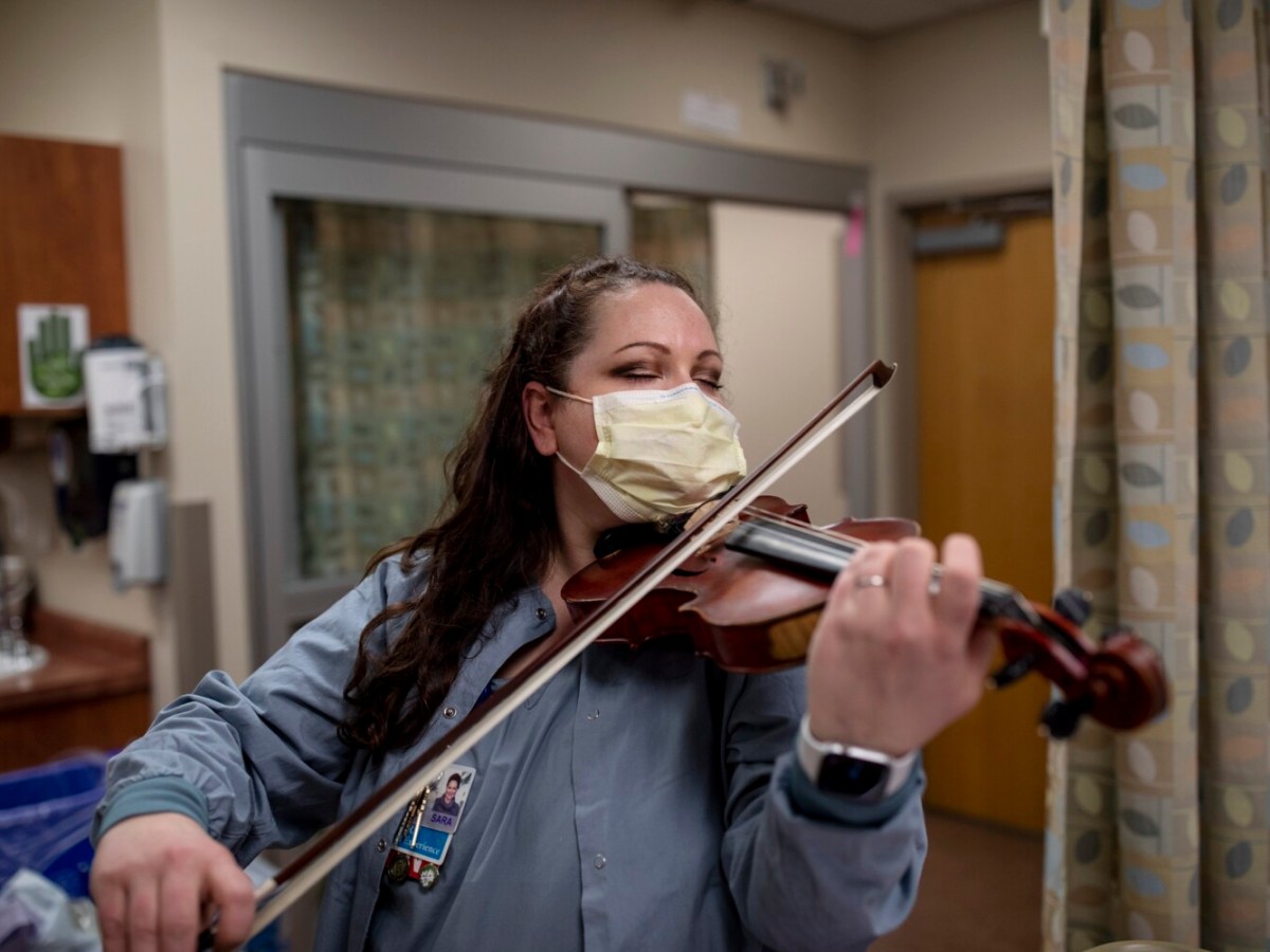 Sara Kapinos is among a dozen health care workers from across the country who will perform Thursday with the famed violinist Joshua Bell.