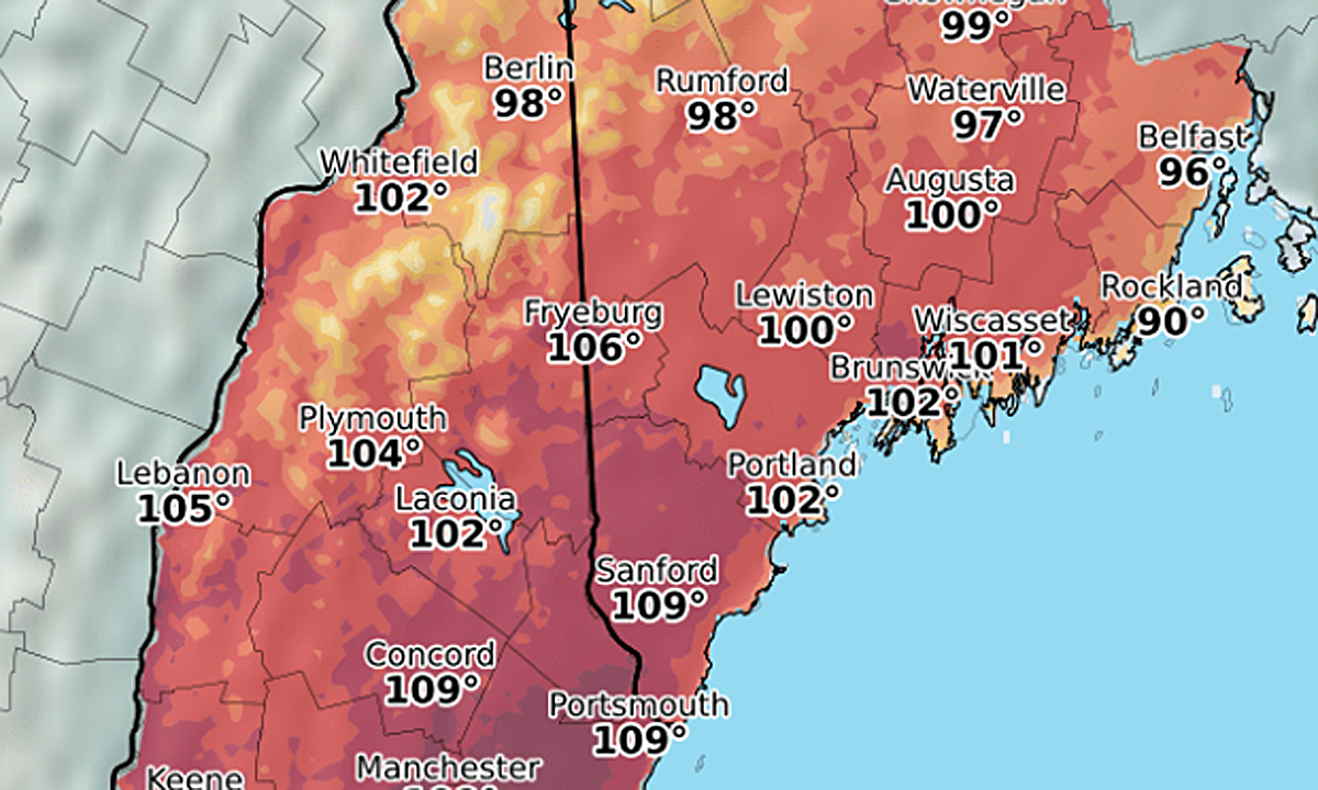 The interior of Maine could see temperatures at 100 or above, according to the National Weather Service.