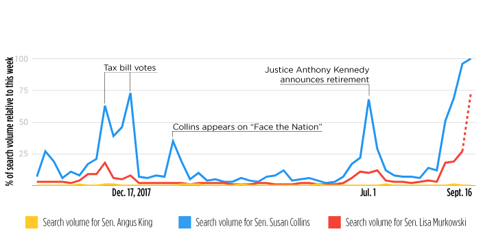 Before Thursday and Friday, the Maine Republican’s previous high for Google searches occurred during last year’s vote on the tax reform bill.