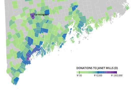 The maps below show contributions by town from donors to the four candidates for governor through Sept. 18, based on reports filed with the Maine Ethics Commission. For detailed information about the specific individuals and businesses making these donations, visit our campaign finance database. Note: due to inconsistencies or missing data in address records for […]