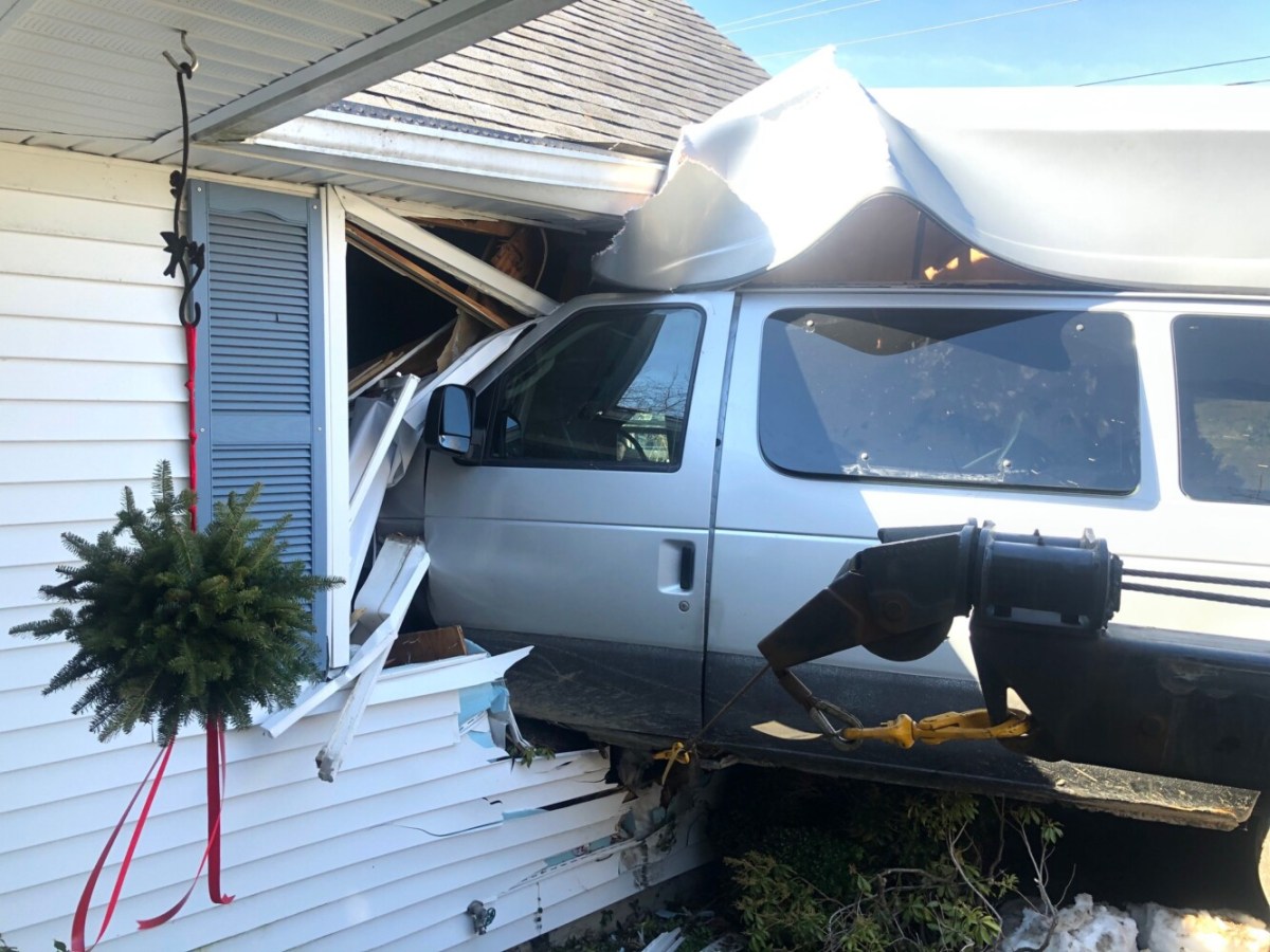 Police say a van crashed through a home at 18 Webber Ave. in Bath, but the driver fled before police arrived.