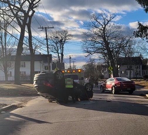 An SUV struck a parked car and rolled over on Jordan Avenue Sunday afternoon.