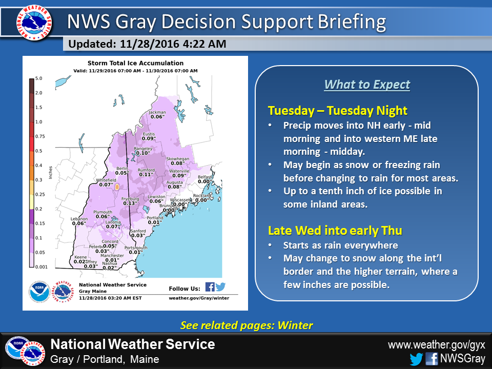A quick-moving weather system will bring an increase in clouds and eventually snow and mixed precipitation overnight and early Wednesday.