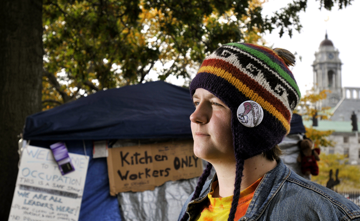 Portland police are looking for the person who threw a chemical bomb at the Occupy Maine encampment in Portland during the early morning hours on Sunday. Occupy Maine protesters say the attack has left them with a mixture of anxiety and resolve.