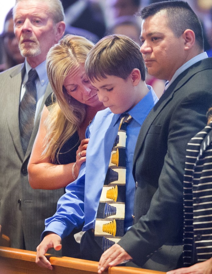 ‘Maybe life is simply random,’ a pastor says at Treyjon Arsenault’s funeral. In Portland, the acting chief says the public ‘should not be fearful’ as the suspects remain at large.