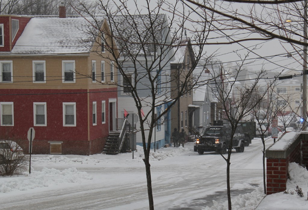 The students and staff are taken to Noble Middle School for the day, while police and bomb dogs search the high school in North Berwick and find it safe.