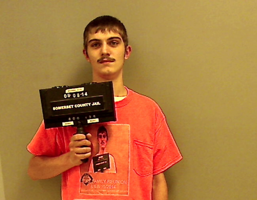 Robert Burt, 19, of Pittsfield has his initial mug shot emblazoned on the shirt, then wears it for his booking photo as he starts his sentence.