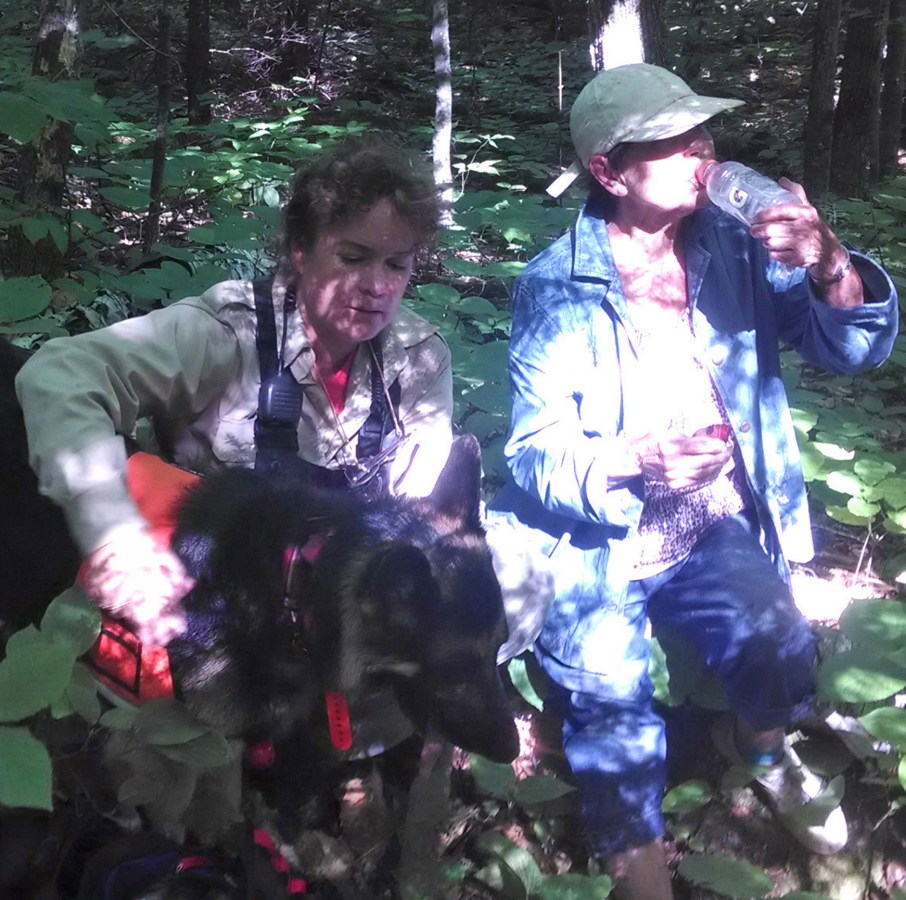 Ruth Brennan, 77, who has dementia, is reunited with relatives after a rescue dog finds her in dense woods in Waterford.