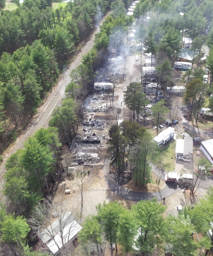 A freight train is blamed for flames and explosions along a three-mile stretch of track from Scarborough to Biddeford. Old Orchard Beach is hardest hit.