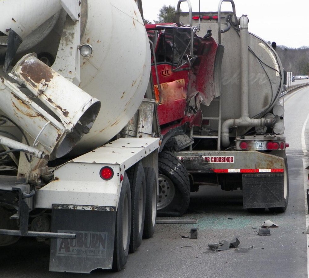 Two large trucks crash, halting northbound traffic while one truck, carrying heating oil, is emptied.