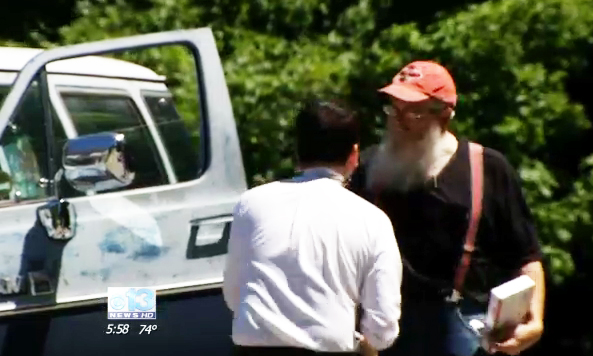 The WGME-TV reporter was interviewing David Houston, 59, about a sign that allegedly uses an ethnic slur to describe the president and urges people to join the Ku Klux Klan.
