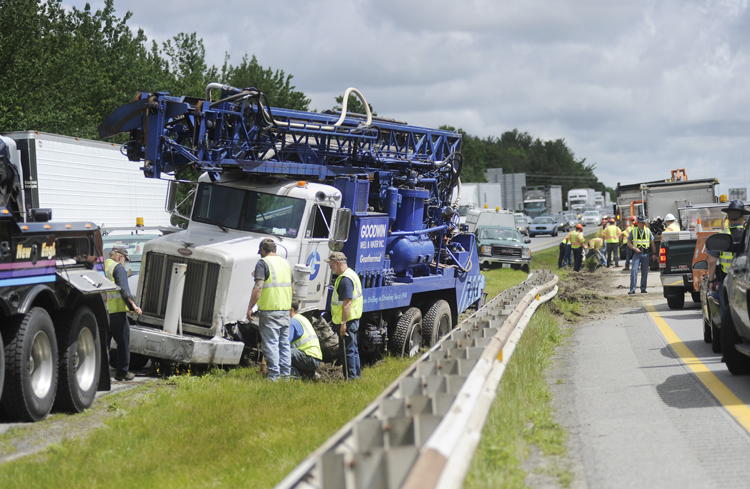 The crash involving a well-drilling truck was causing major delays on I-95, but traffic is now back to normal.