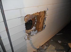 A thief saws a hole in the wooden wall of the Big Apple in Gray and steals thousands of dollars in cigarettes.