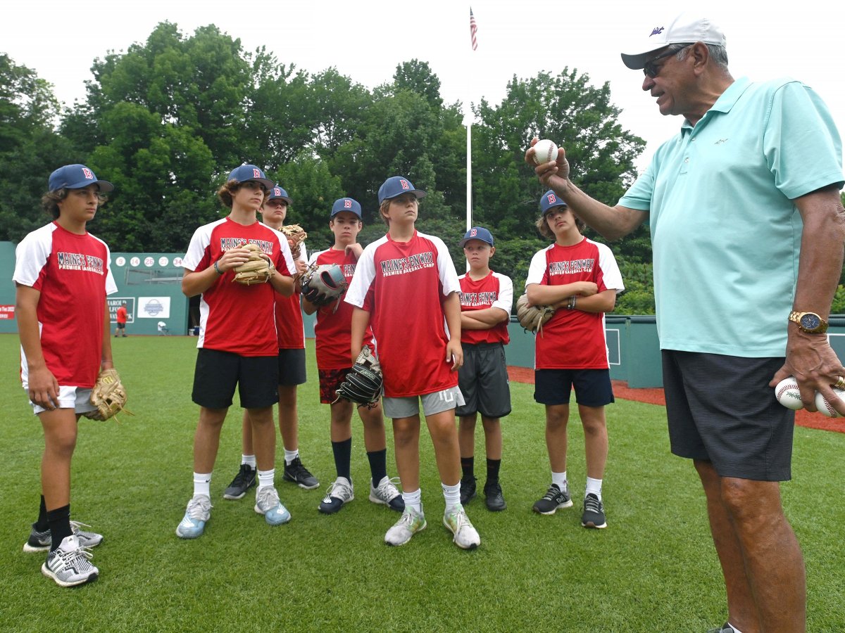 Waterville police officers worked this week with young ball players at Maine’s Fenway Premier Baseball Camp in Oakland, and a few former major league players joined them, too. Photos by Morning Sentinel photographer Rich Abrahamson.